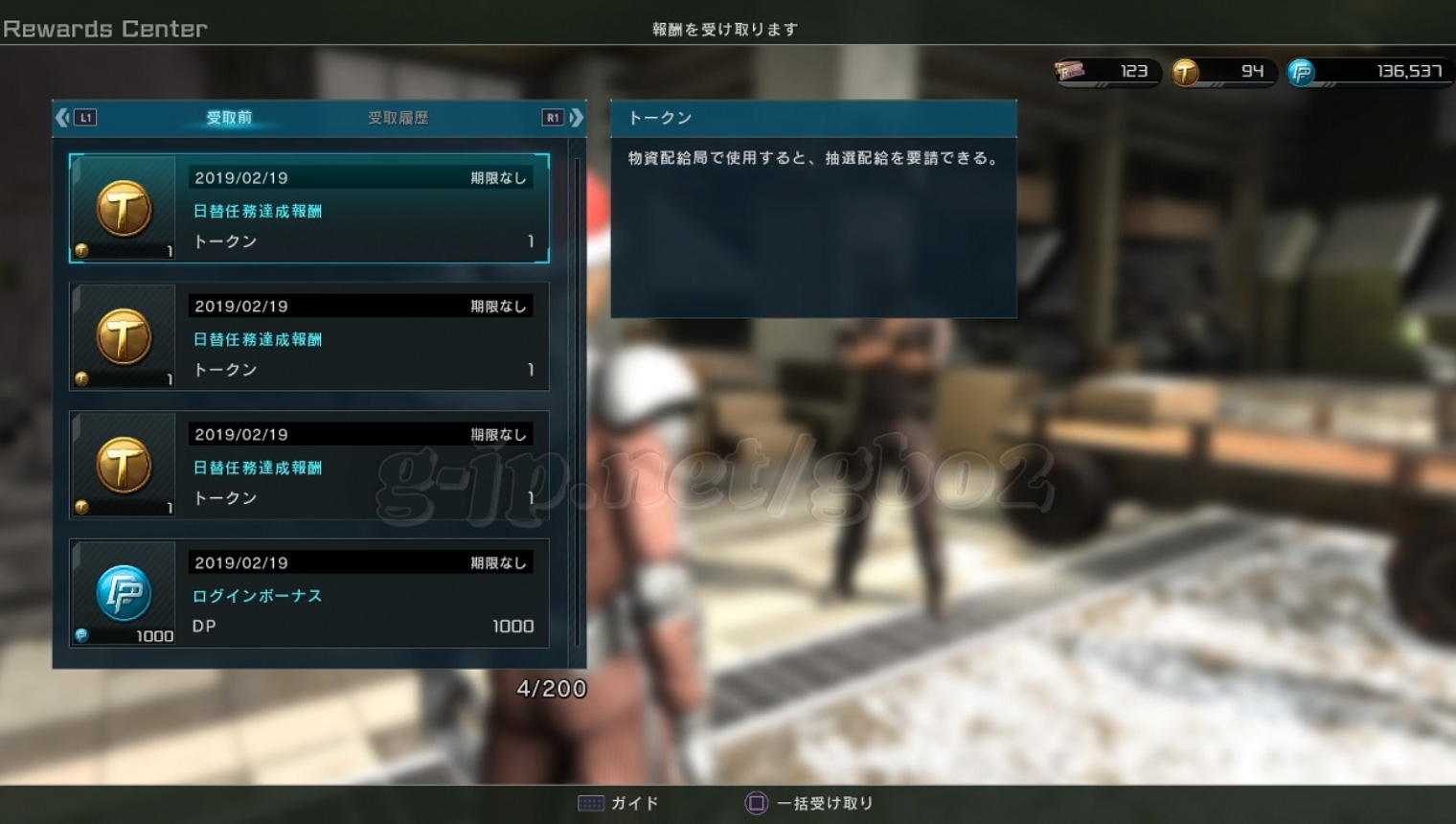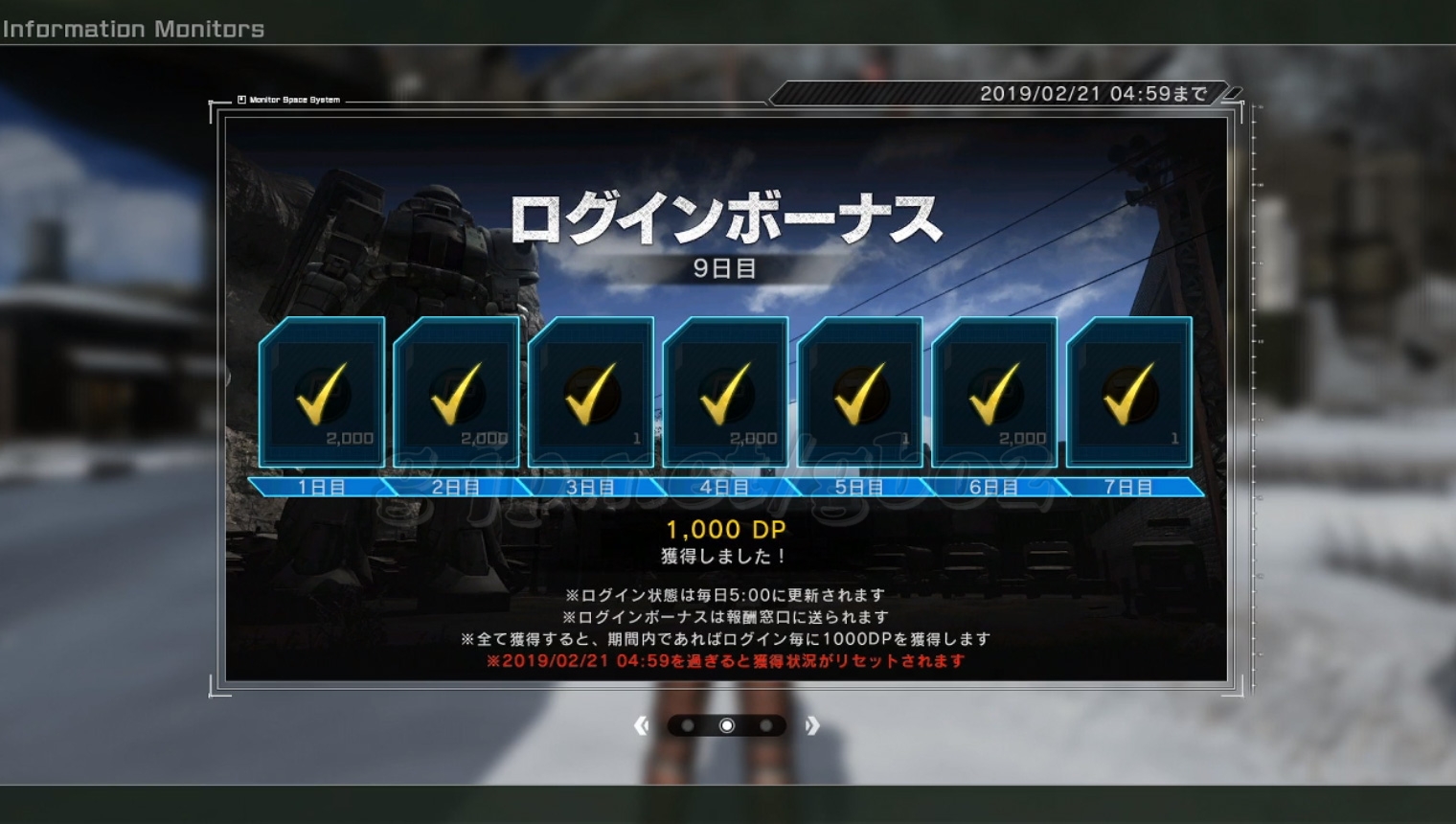 ログボ、1000 DP。日替り、3トークン。