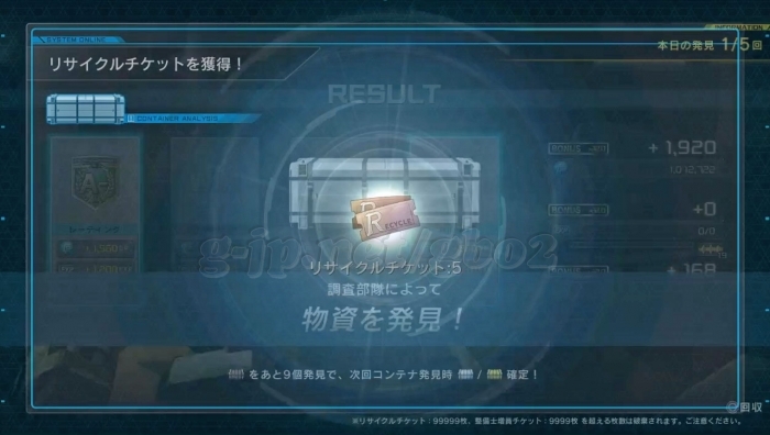 計9戦…コンテナ報酬:α:1、β:1、γ:1