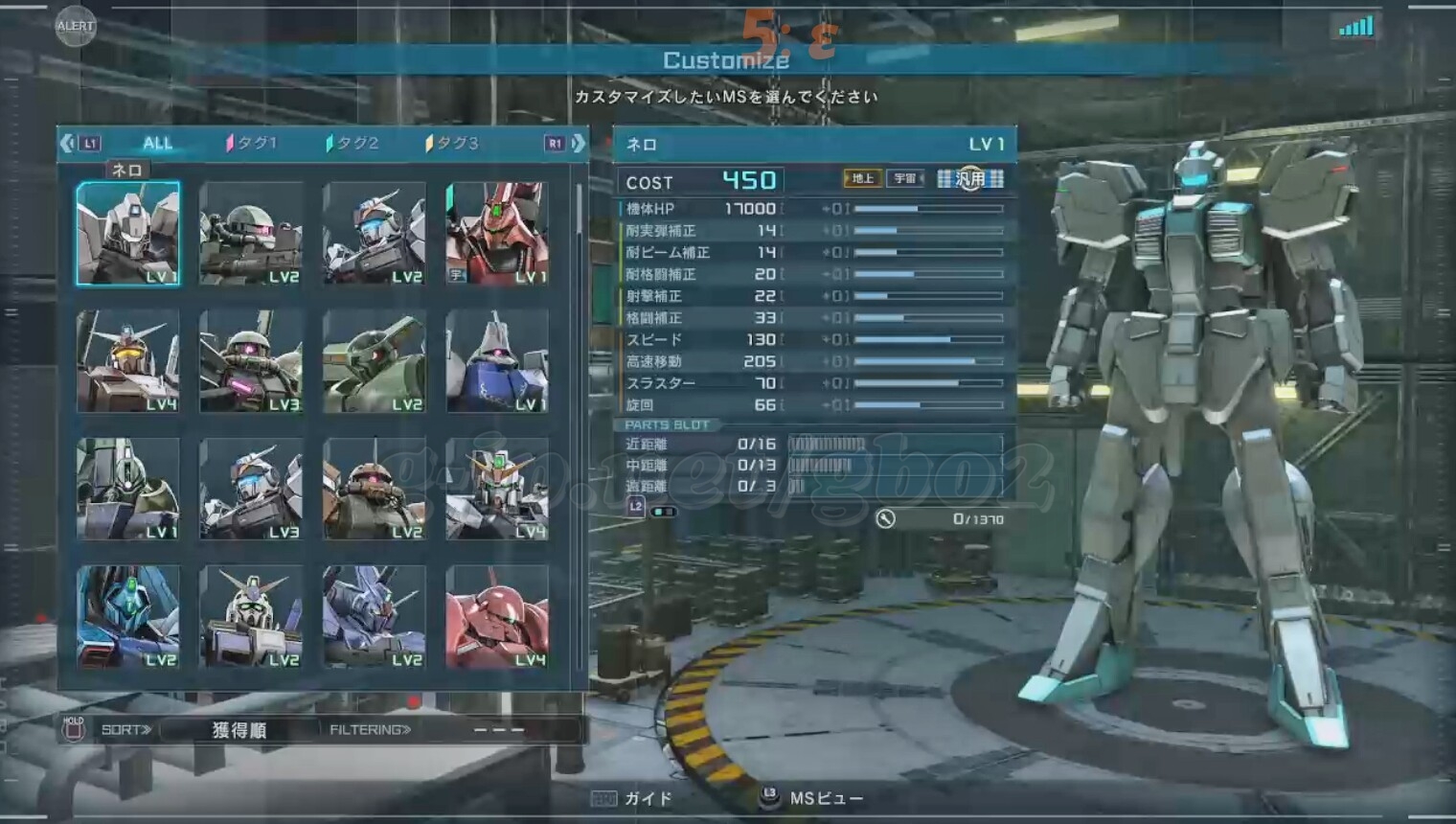 ガルバルディβ LV1~2 汎用機 ★3 宙陸両用 コスト450~