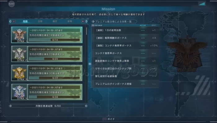 更新初日に引かなかったのは、8月度の戦功白金章を中旬の初日時点で達成していた為、抽選引きで加算されるリサイクルチケットの加算枚数を9月分の月間任務に回す為。