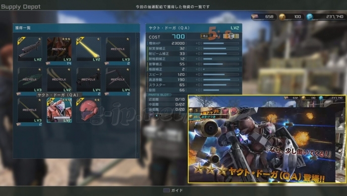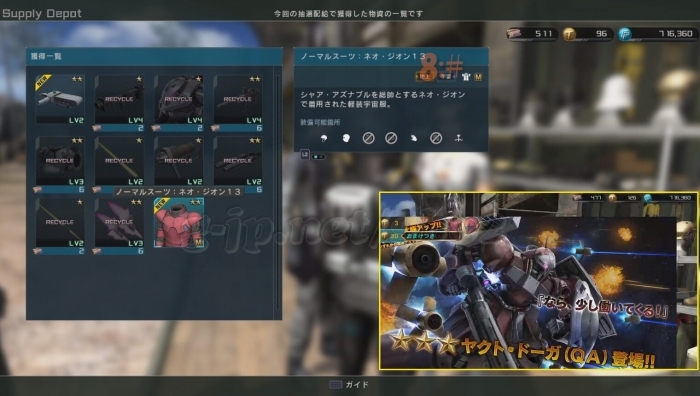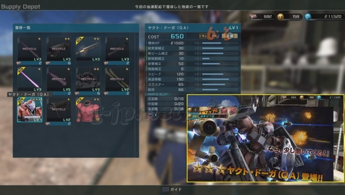 4アカウントで10連づつ…ヤクトドーガQA LV1 と LV2 が1機づつ出た。